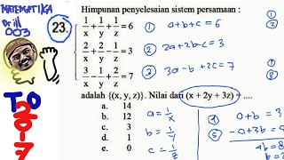 - un sma matematika 2017, prediksi, pembahasan no 23, persamaan linear tiga variabel
